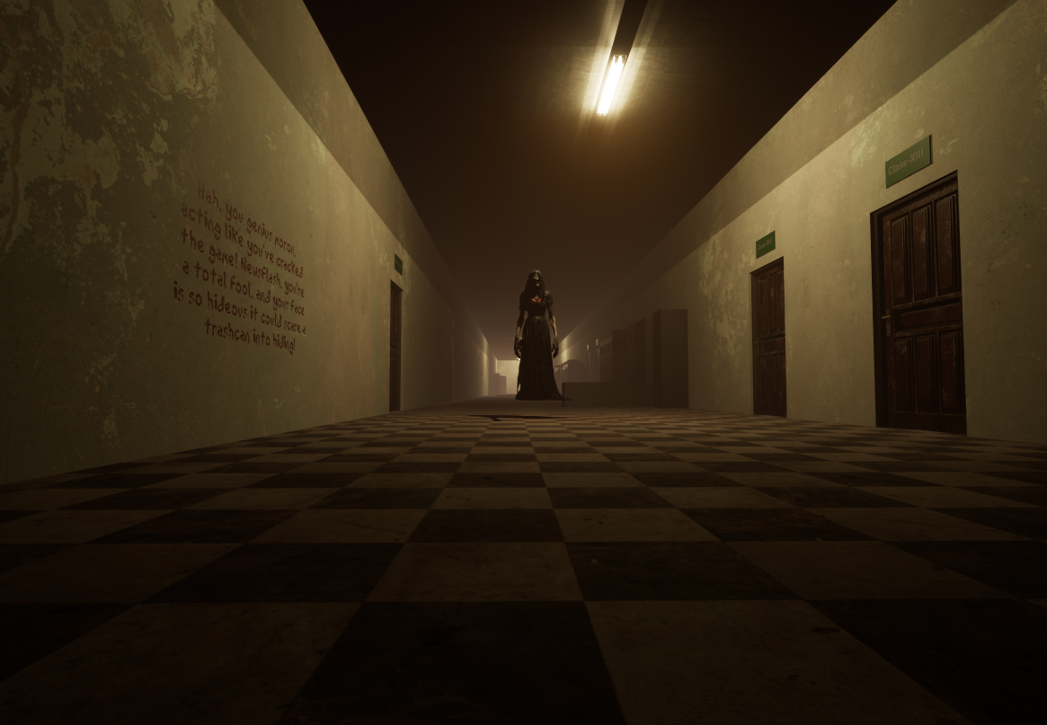 Whispering Shadows is a first-person psychological horror experience set inside the ruins of an abandoned school.